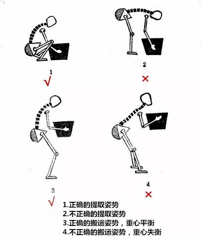 我們從腰扭傷的原因就可以知道,搬重物時要量力而行,并且掌握正確的姿勢(圖1)。日常生活中腰部活動要和緩,不要使猛勁兒,運動時也要先做好準備活動。
