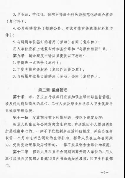 細則中提出,招錄人員在五年合同期內發生辭職、辭退或因個人原因調離所屬社康中心的,一律不予發放剩余生活補助額度,并應當在離職前一個月內退回已領取的生活補助。招錄人員在五年合同期內,受到黨政紀律處分情形,一律不發放剩余生活補助額度。