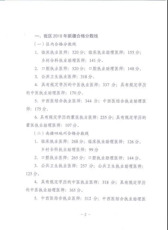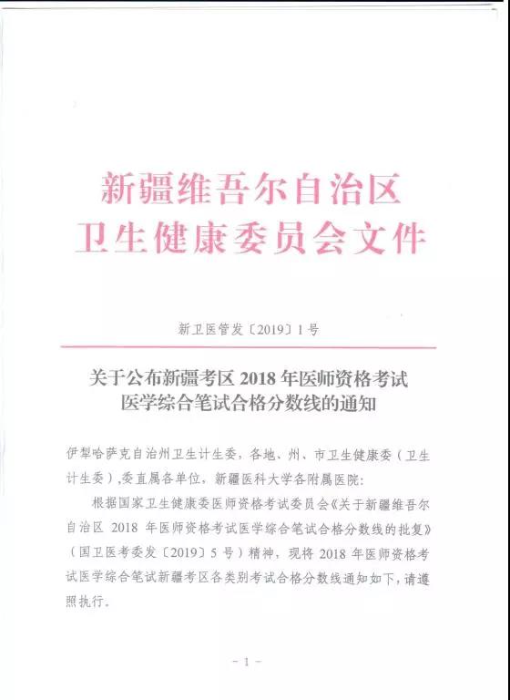 附1. 關于公布新疆考區(qū)2018年醫(yī)師資格考試醫(yī)學綜合筆試合格分數線的通知