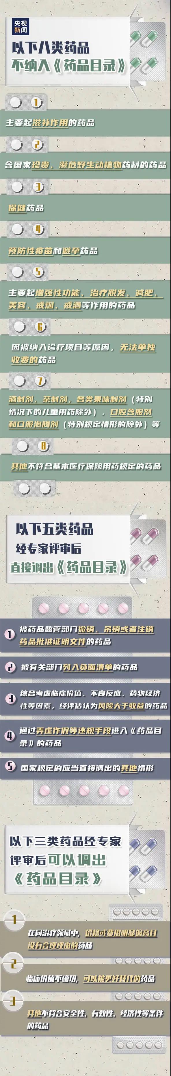 辦法明確了包括預防性疫苗,滋補藥品,保健藥品,脫發、美容減肥類等在內的八類不得進入《藥品目錄》的藥品;規定了醫保基金的支付辦法等。