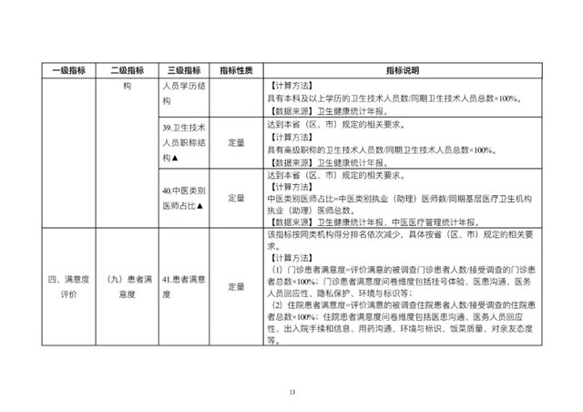 (三)可持續發展。重點評價人力配置和人員結構情況。通過人力配置指標考核基層醫療衛生機構可持續發展潛力;通過人員結構指標考核基層醫療衛生機構人力資源配置合理性。